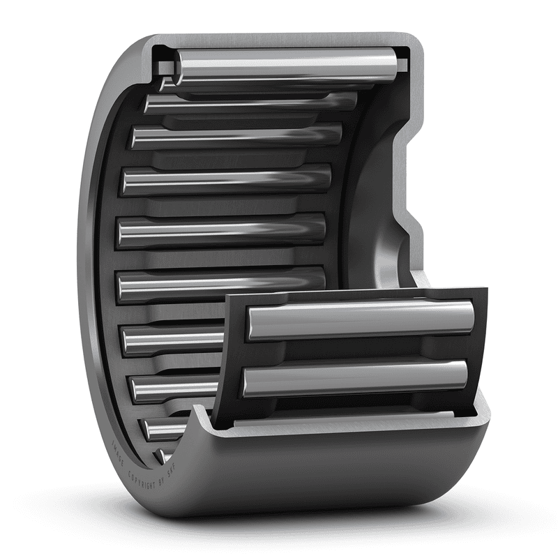 Drawn cup needle roller bearings are typically used in applications where the housing bore cannot be used as a raceway for a needle roller and cage assembly, but where a very compact and economical bearing arrangement is required. Owing to the large number of rollers, the bearings have a high load carrying capacity and stiffness. The closed end makes them suitable for bearing arrangements where they are situated at the end of a shaft.